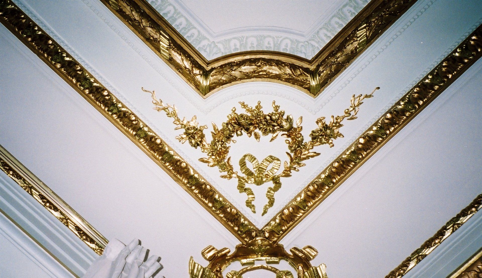 Renovation of the entire large living room, painting and decoration, rich gold patina and pale gold in bronzine