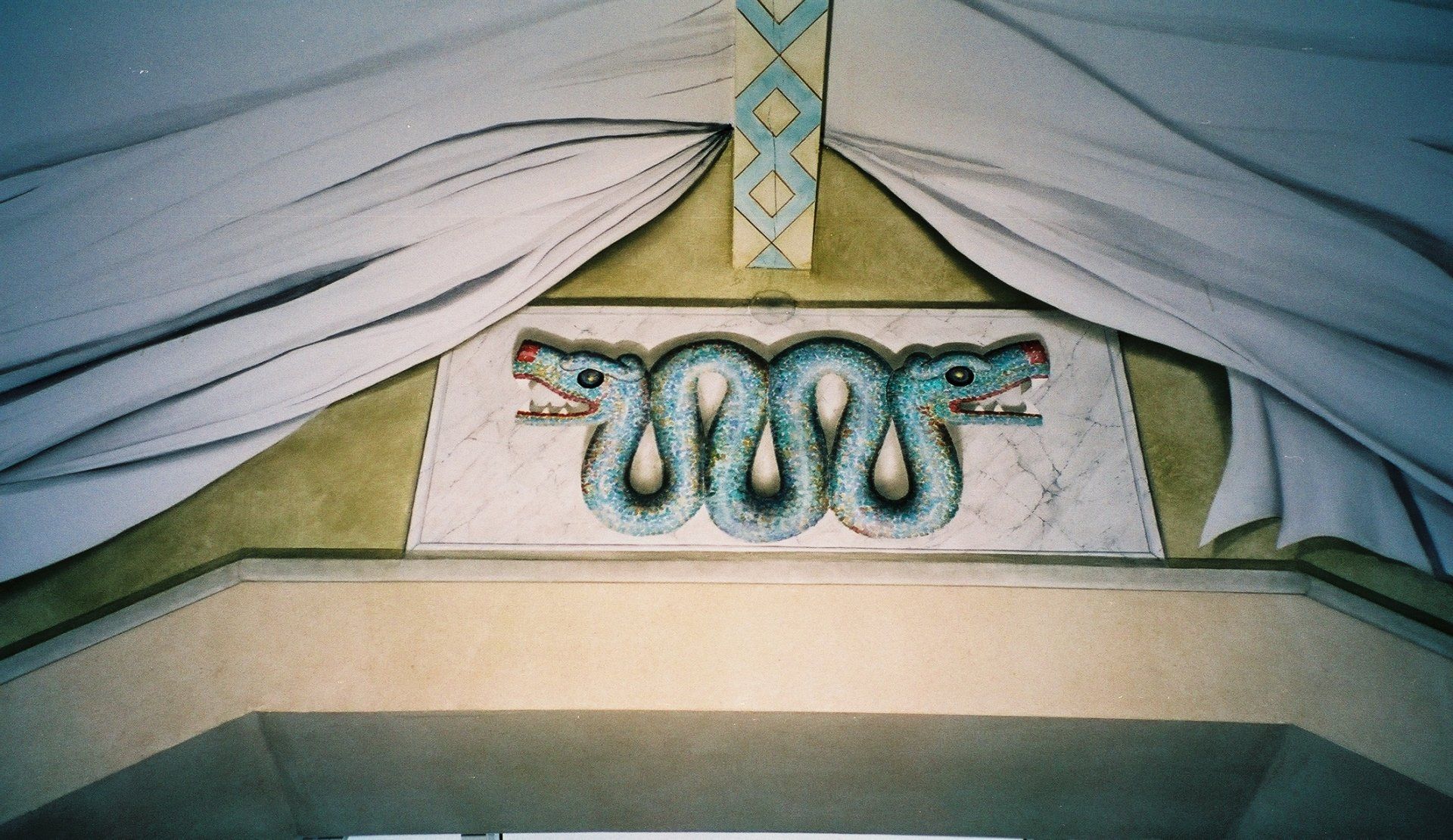 Example of different decorations painted on plaster staff. Exhibition La Grande Halle De La Villette, Paris.
