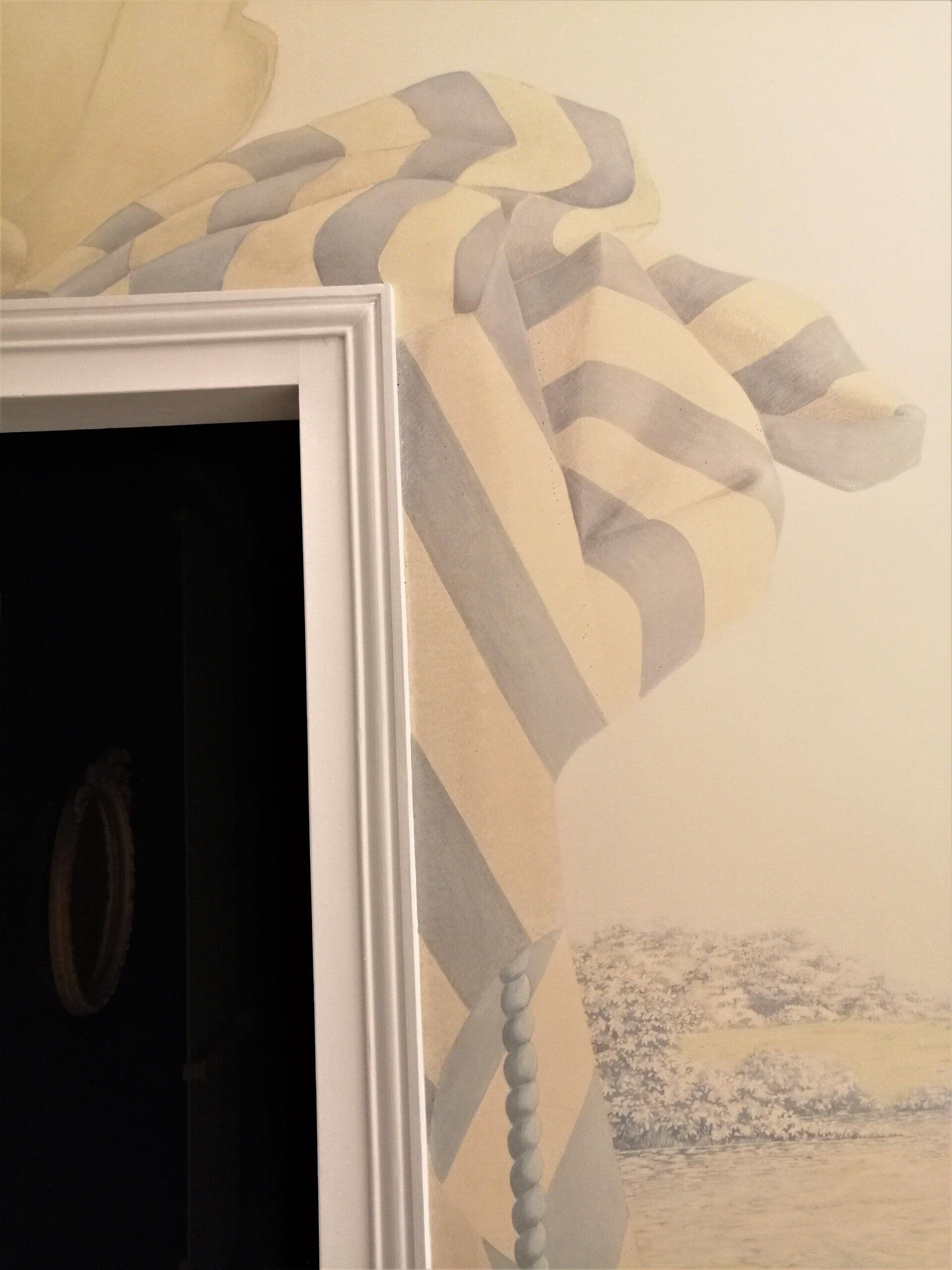 Trompe l'oeil decoration in fine oil on patina, cast shadow