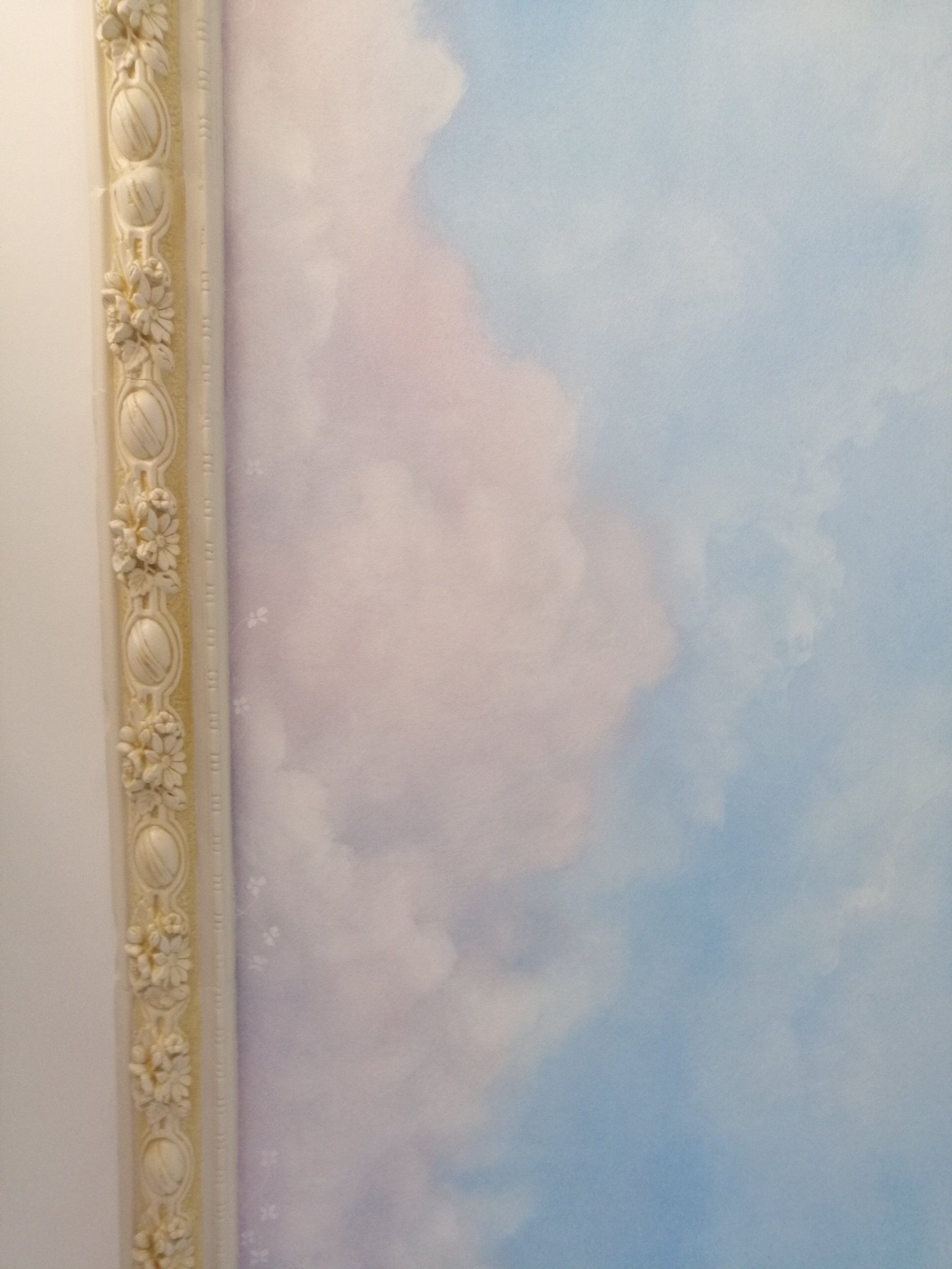 trompe l'oeil sky with false molding, made in fine oil, varnished finish