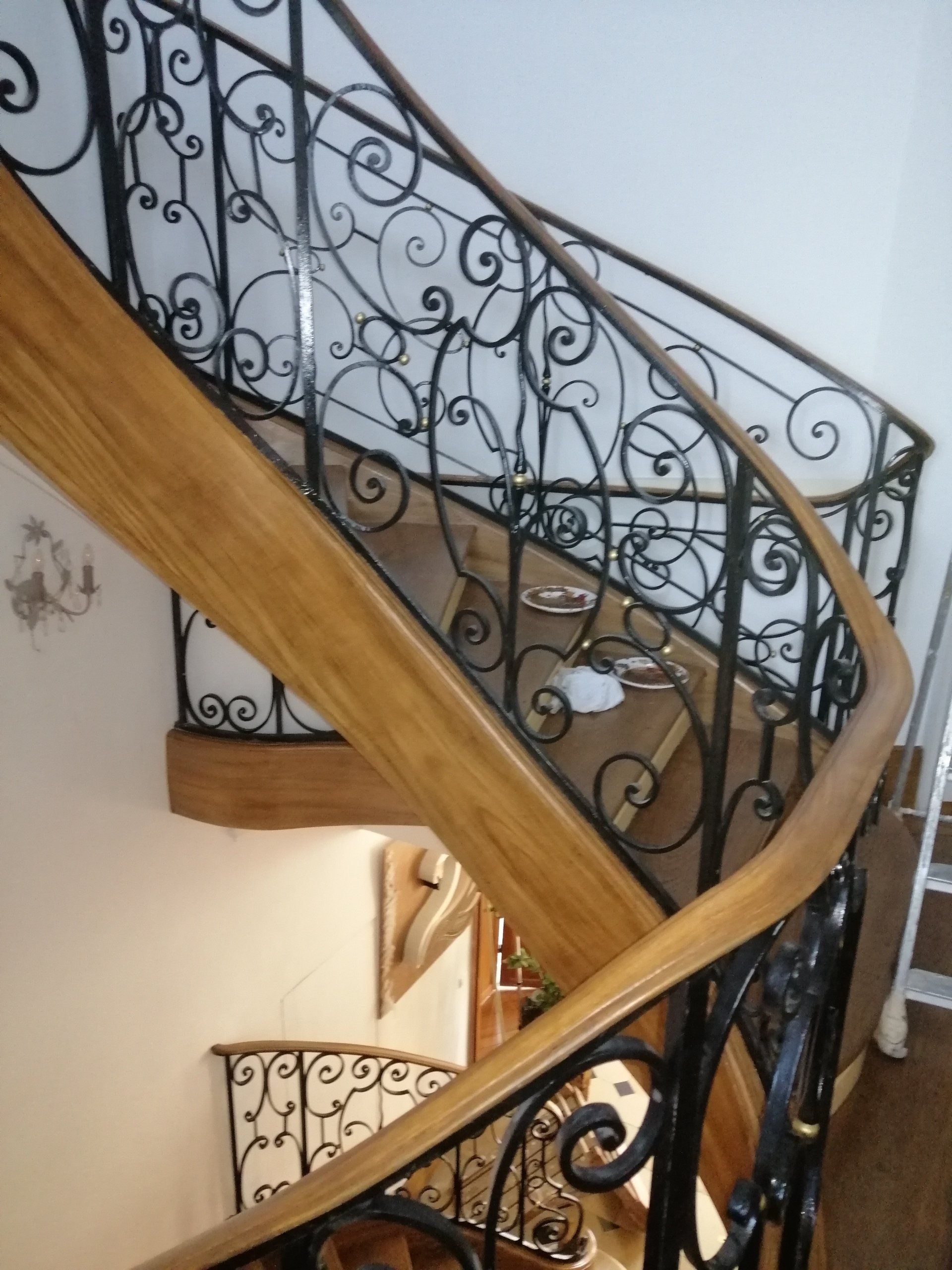 Faux wood stairwell, handrail, stylus, plinths, matte varnish finish