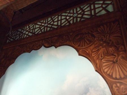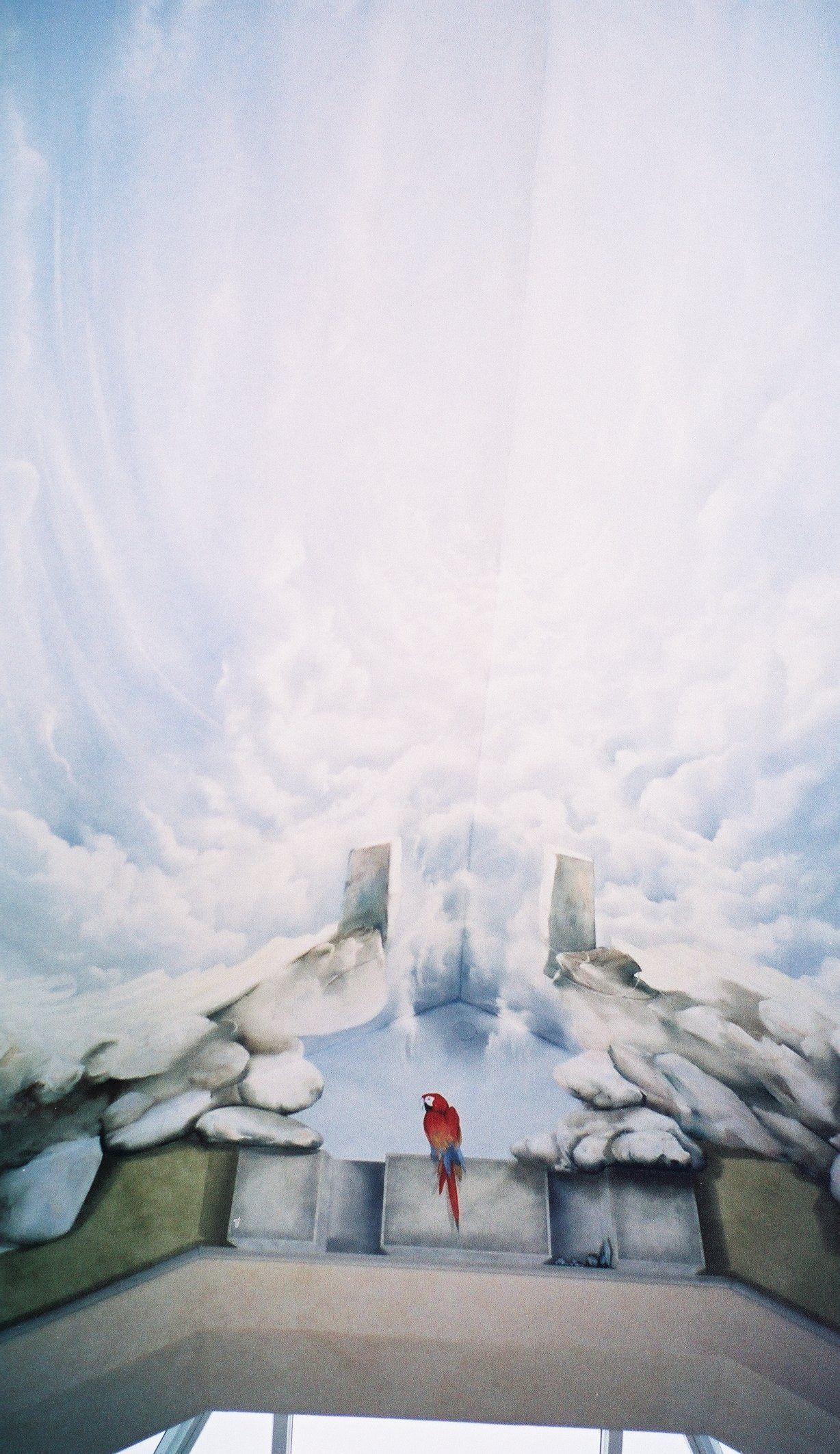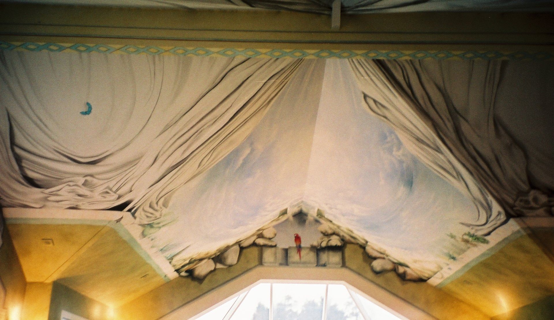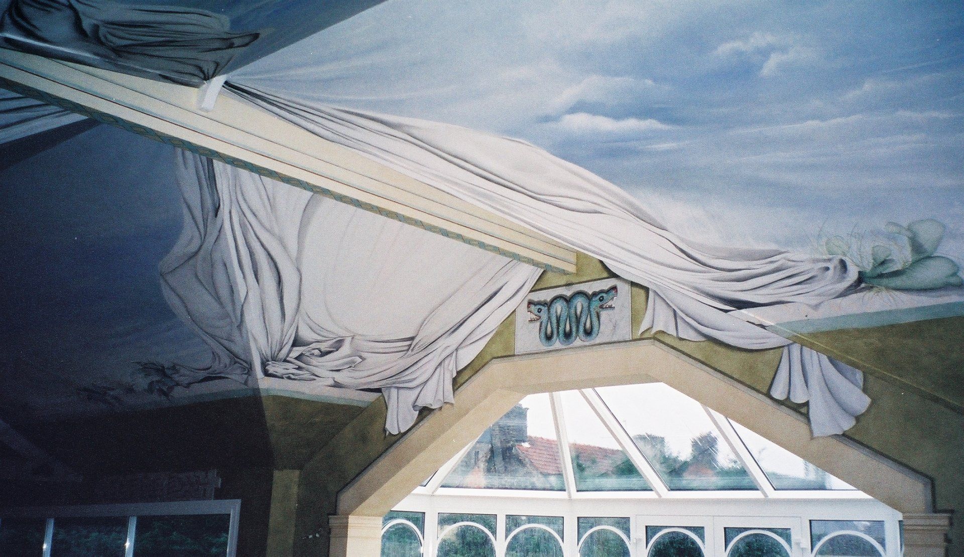 Ciel et serre en trompe l'oeil, fausse moulure et ombre portée