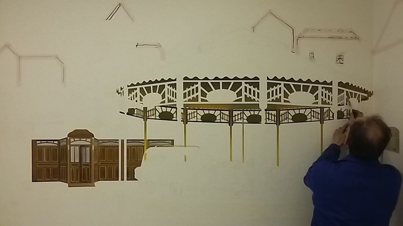 Création et réalisation pour réadaptation d'une décoration peinte sur un mur en crépi