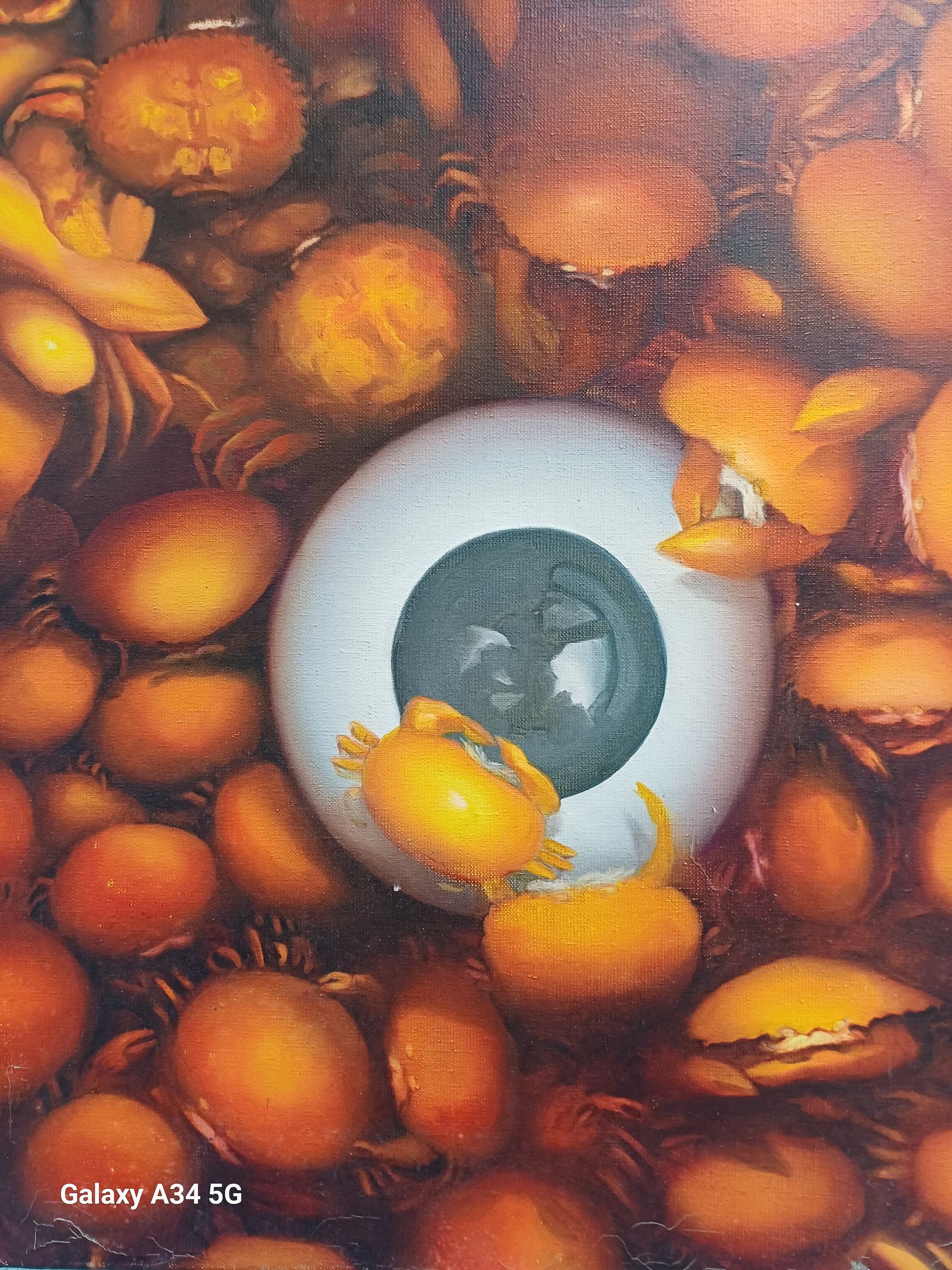 Tableau à l'huile fine, thématique " Crabe à moustache" / Le Consensus