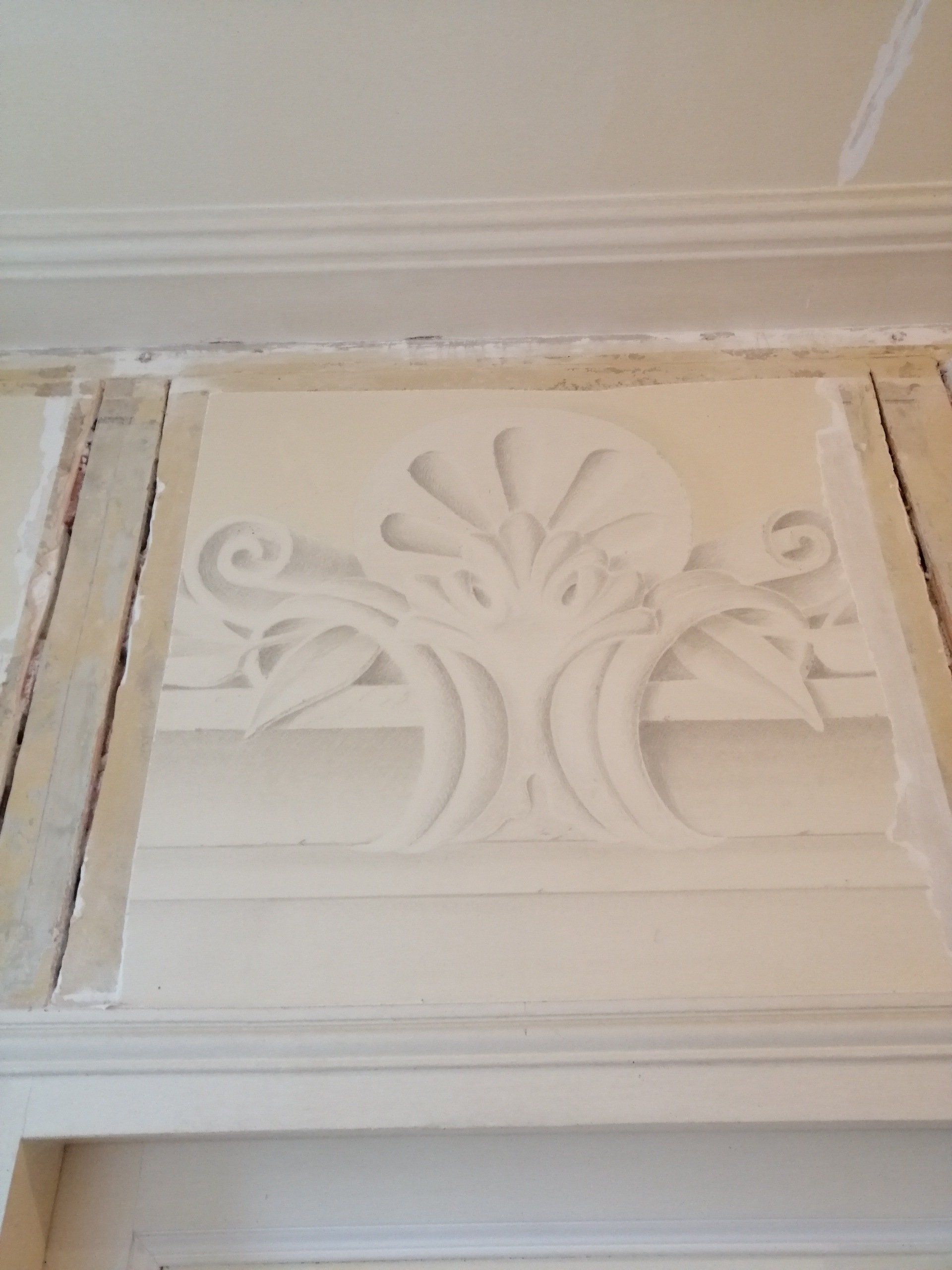 Création et réalisation à frais, d'un décor à l'huile fine en camaïeux, 2 jours de travail.