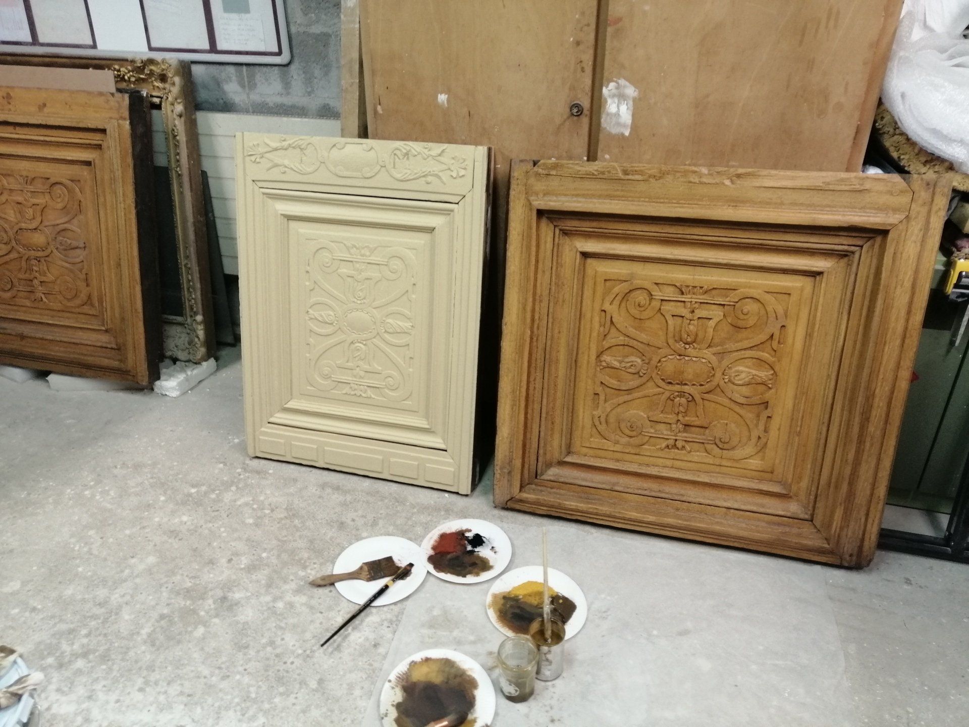 Décoration de l'ensemble/ Patines sur staff, dorure en bronzine patinée, Restauration des cadres
