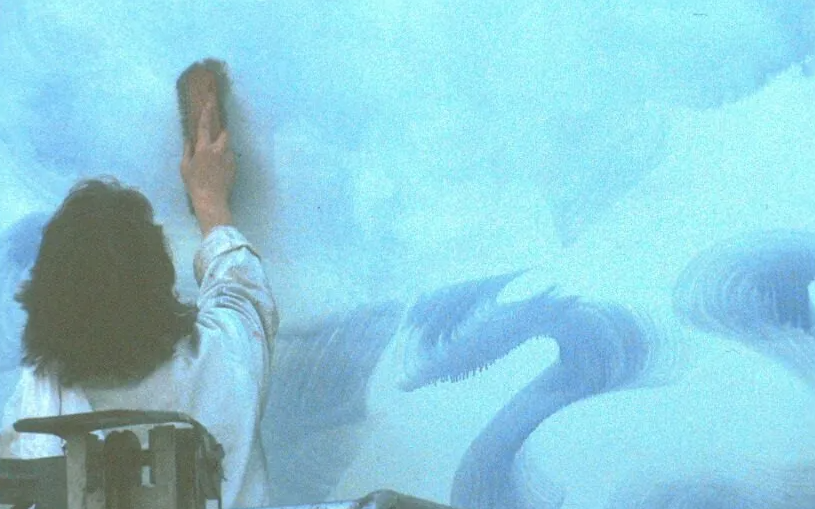 Ciel dans une salle de cinéma privée, réalisé à l'aérographe.