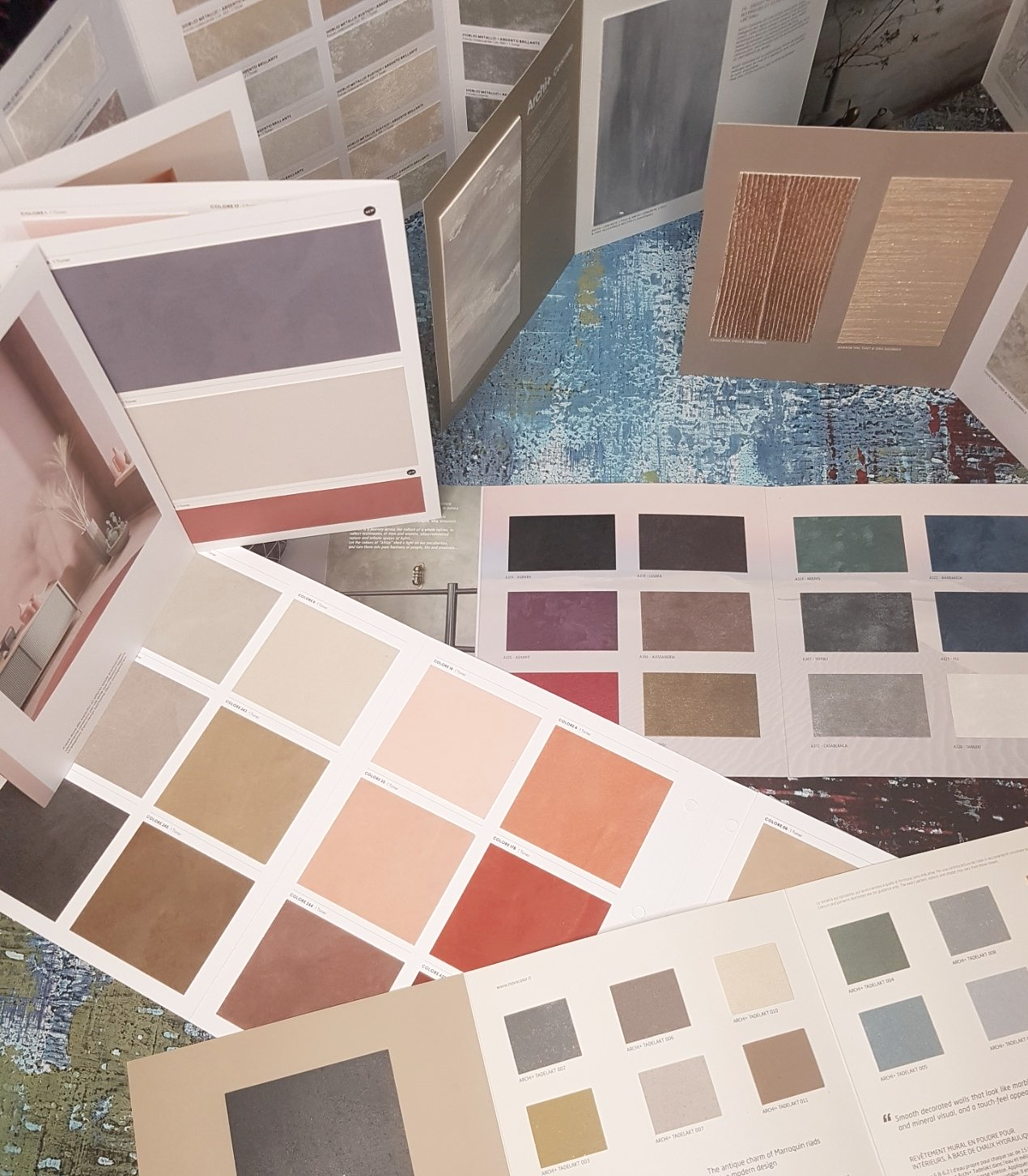 La magie de cette gamme de produits offre ce qu'il y a de plus original et s'adapte ainsi à l'attrait et à la finition recherchée: aspect mat, satiné, brillant, patiné, lustré, nacré, métallisé, sablé, brut ou affiné et bien plus encore. Selon vos envies, la décoration peut se suffire au choix défini de la matière, peut se modeler, se structurer et répondre ainsi à toutes formes créatrices, artistiques ou copies d'éléments architecturaux (enduit béton, rouille, marbre, pierre, métal, stuc, etc...) , création de forme incrustée dans la masse, représentation de décoration linéaire, d'aspect cuir, lin , bambou, autres ... étude de faisabilité sur demande de rendez-vous.